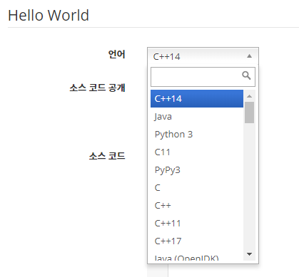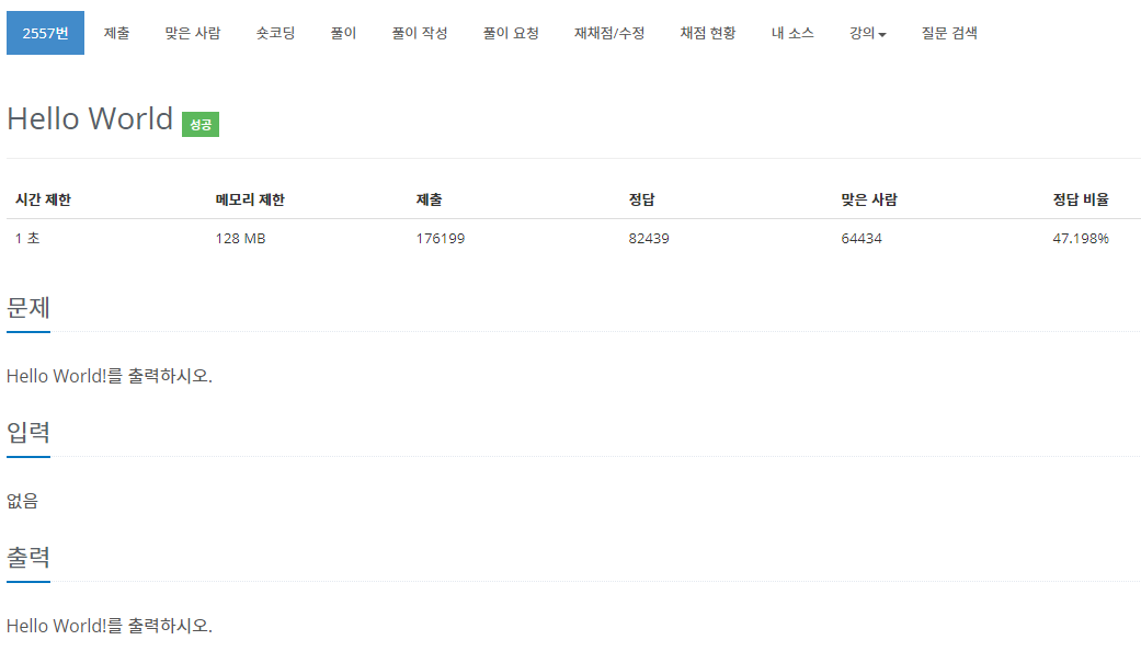 가장 기초적인 Hello World 문제를 선택하고