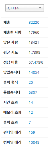 C++ 17의 제출자수를 보는거였어요.. ㅋㅋㅋㅋㅋㅋㅋㅋㅋㅋㅋㅋㅋㅋㅋㅋㅋㅋㅋㅋㅋㅋㅋㅋㅋㅋ