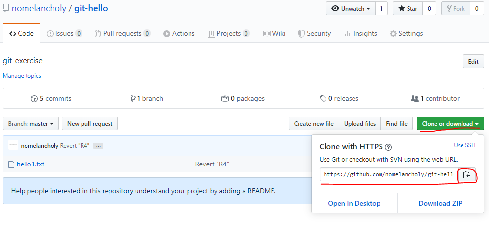 예를들어 우리가 지금까지 실습을 진행한 helloGit과 이웃한 위치에 이 repository를 clone하기 위해선