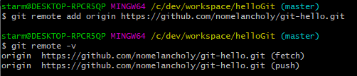 위 두 줄 중 git remote add 명령어가 연결을 담당하는데 뒤의 origin과 주소는