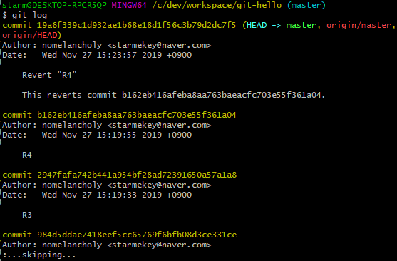 Revert "R4" 메모와 함께 Commit된 것이 최신 버전임을 확인할 수 있다 이럴 때