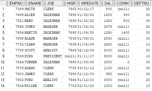 1SELECT * FROM EMP;