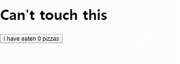 1234567891011121314151617181920212223242526272829303132333435363738394041424344import React, { Component } from "react";const MAX_PIZZAS = 20;class Controlled extends Component {state = {pizzas: 0};render() {return (<button onClick={this._handleClick}>{`I have eaten ${pizzas} ${pizzas === 1 ? "pizza" : "pizzas"}`}</button>);}_handleClick = () => {this.setState(eatPizaa);// eatPizaa를 활용해 state를 업데이트 합니다};}const eatPizaa = (state, props) => {// eatPizaa에선const { pizzas } = state;if (pizzas < MAX_PIZZAS) {return {pizzas: pizzas + 1// pizzas가 MAX_PIZZAS 보다 작을 경우 1 즈악한 pizzas를 리턴하지만};} else {return null;// 그렇지 않으면 null을 리턴합니다}};class App extends Component {render() {return <Controlled />;}}export default App;코드를 위와 같이 작성하면