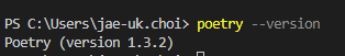 버전이 잘 노출되고 이러면 환경 변수 설정이 잘 완료된 것이라 poetry를 사용하실 수 있습니다.
