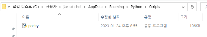 이제 poetry 실행 파일의 경로를 찾아봅시다. 검색해보면 주로