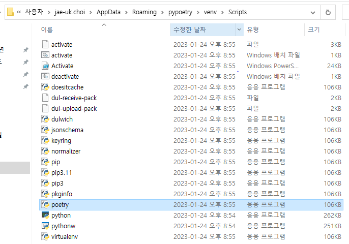 에서 python\scripts 하위 혹은 pypoetry\venv\scripts 하위에 있다고 하는데