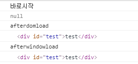 일반 script 코드 -> DOMContentLoaded 안의 코드 -> window.onload 안의 코드 순으로 출력됩니다.