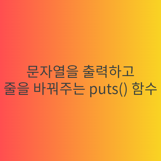 12345678910111213141516171819#include <stdio.h>// scanf(), printf()와 같이 puts() 함수를 쓸 때도 stdio.h를 include 해줘야 한다.int main(void){printf("문자열을 출력하고 줄을 바꿔 줘야 할 때 \n");puts("printf 함수가 아닌 puts함수를 사용하면");printf("\\n을 쓰지 않아도 자동으로 줄이 바뀐다");/*문자열을 출력하고 줄을 바꿔 줘야 할 때printf 함수가 아닌 puts함수를 사용하면\n을 쓰지 않아도 자동으로 줄이 바뀐다*/}cs 포스팅 하기도 민망할 정도로 간단하다