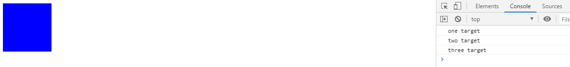 세개가 겹쳐져 있으니 클릭된 건 가장 위에 있는 .three target만 콘솔에 찍혀야 맞는 것 아닐까?