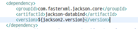 jackson 라이브러리를 추가하는 건 어렵지 않다. https://mvnrepository.com 에서 Jackson Databind를 검색하고 버전을 택한 후 나오는 내용을 pom.xml에 붙여주면 끝이다. databind 는 jackson-core, jackson-annotation 에 의존성이 있으므로 pom 파일에는 databind 모듈만 기술해주면 되는 것이다.