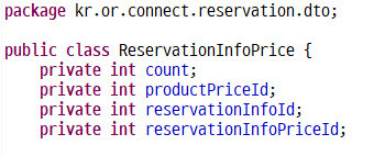 역시 getter setter 생략. 실제로는 구현해야 함 이렇게 json 데이터를 담은 java 객체를 구현하고