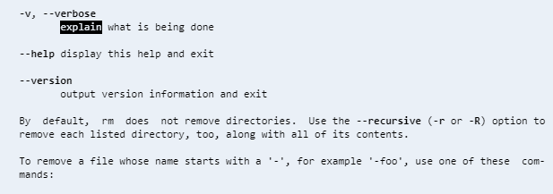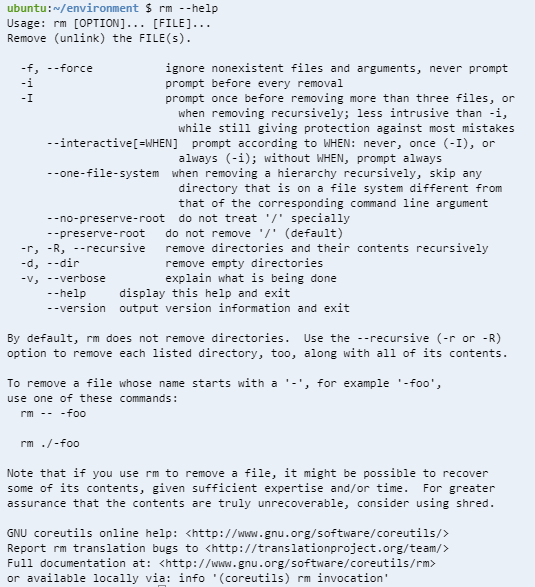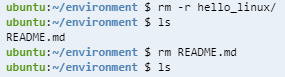 위에서 볼 수 있듯 파일은 rm 파일명 명령어만으로 삭제가 가능하지만