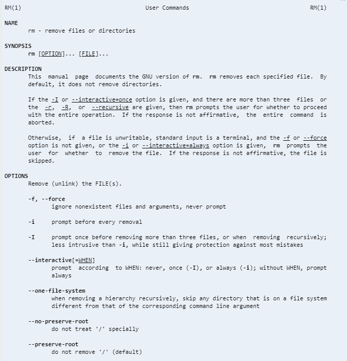 좀 더 상세한 메뉴얼은 'man 명령어' 명령어를 활용해 확인할 수 있는데