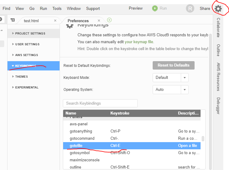 저 중 Write Out이 파일 저장인데 cloud 9의 경우 ctrl-o가 gotofile의 단축키로 설정되어 있어서