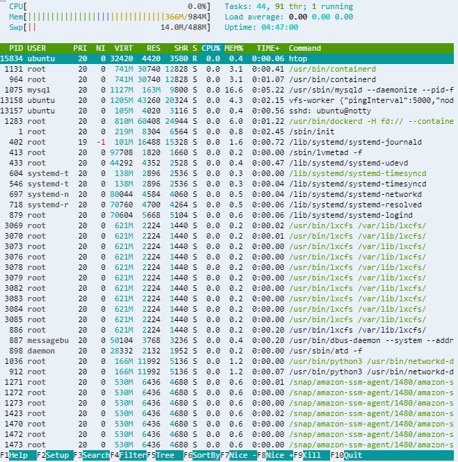 그 후에 htop을 실행하면
