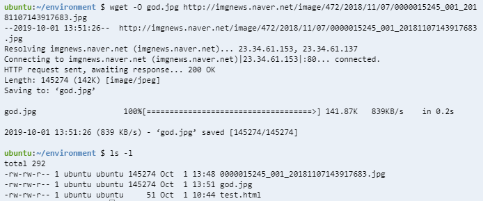 이런 식으로 입력하면 원하는 파일명인 god.jpg로 파일이 잘 다운로드 된 걸 확인할 수 있다.
