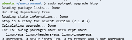 sudo apt-get-upgrade 패키지명 : 명시한 패키지 최신 버전으로 업그레이드