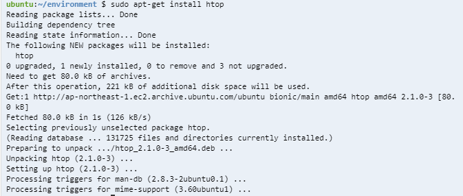 htop을 설치하는 명령어를 실행하면 위와 같이 나온다