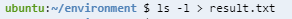 이렇게 ls -l 뒤에 > 표시를 한 후 result.txt 를 더해서 입력하면 모니터에 추가 정보가 더 나오지 않는다.