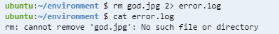 예를 들어 이렇게 파일을 한번 지우고, 한번 더 지워서 나오는 에러 메시지를 redirction 하기 위해