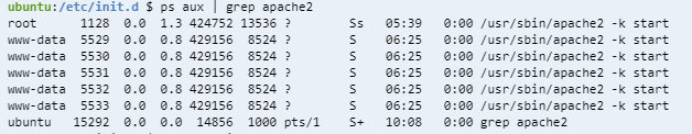 ps에서 apache2가 들어가 있는 프로그램들의 프로세스만 모니터링해보면
