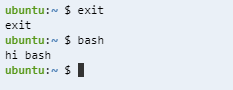 이렇게 bash를 종료 후 다시 실행했을 때 hi bash라는 출력이 나오는 걸 확인할 수 있다.
