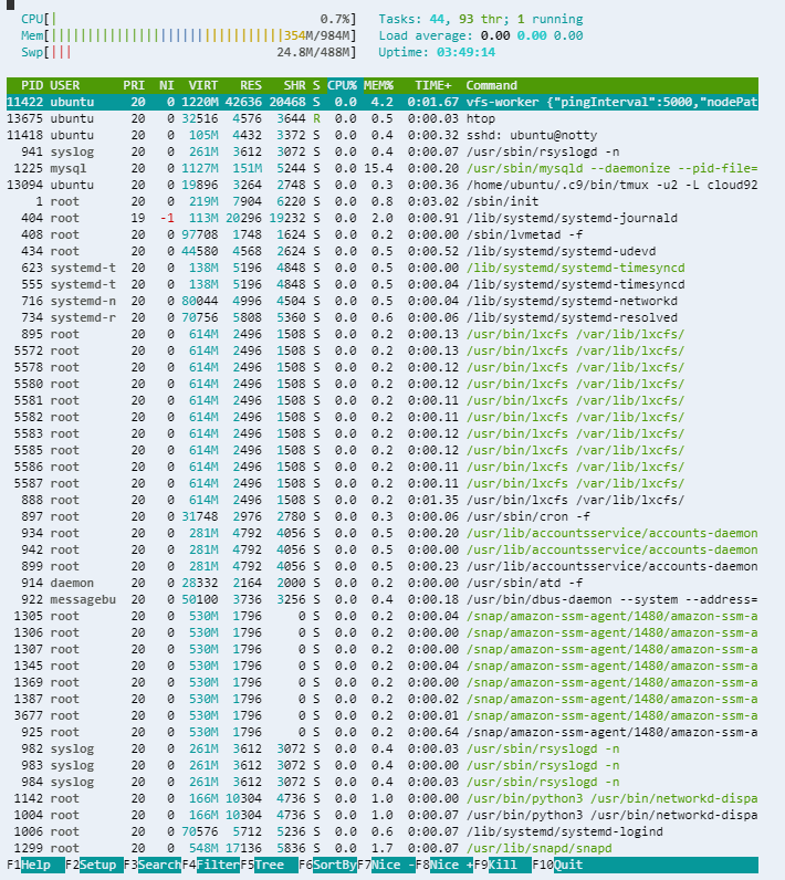 모두 설치했다는 가정하에 htop 을 실행시켜보면