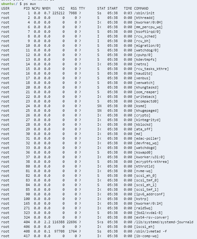 ps로 백그라운드에서 실행중인 프로그램까지 모니터링하기 위해선 ps aux를 입력해줘야한다. 그러면