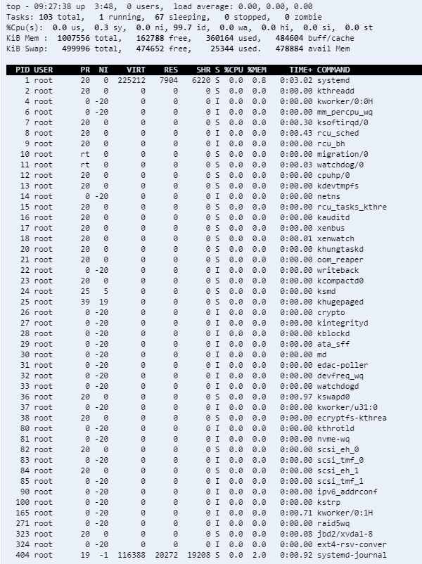 htop은 이보다 좋은데 이는 기본 제공 프로그램이 아니니 다운로드가 필요하다