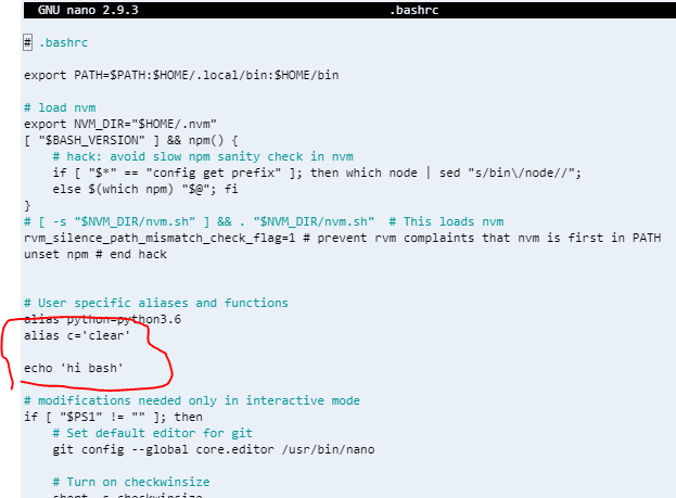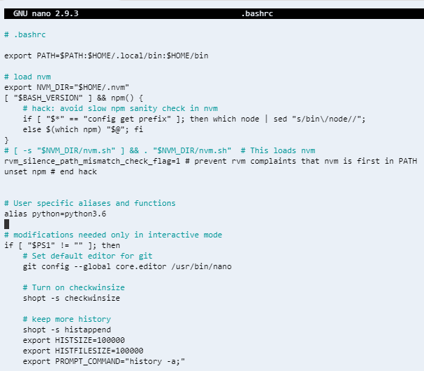 sudo nano .bashrc를 입력해 nano 에디터로 해당 파일을 열면