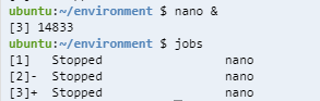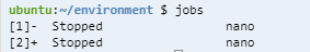두개의 nano 프로그램이 실행되고 Stopped 상태인 걸 볼 수 있다.