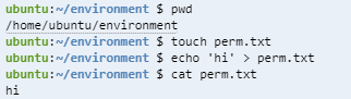 perm.txt 파일을 만들고 hi의 출력을 perm.txt로 돌리면 perm.txt에 hi라는 내용이 잘 써지는 걸 볼 수 있지만