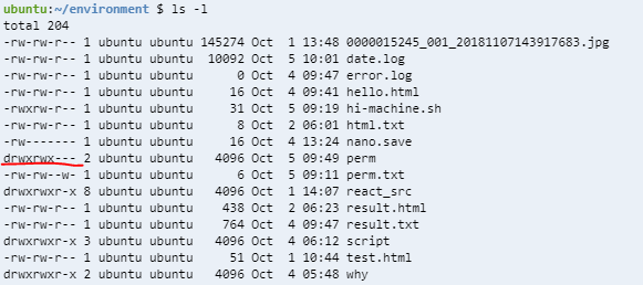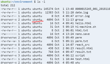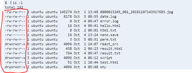 저 권한과 숫자 옆에 ubuntu라고 써져있는 게 user를 뜻하고 그 옆에 ubuntu가 권한을 뜻하니