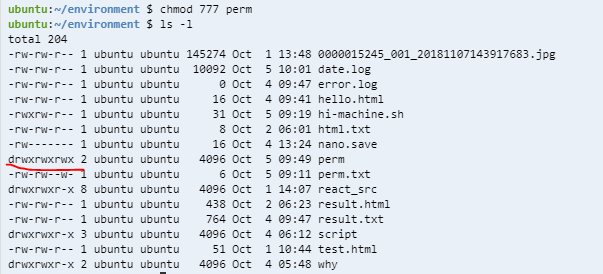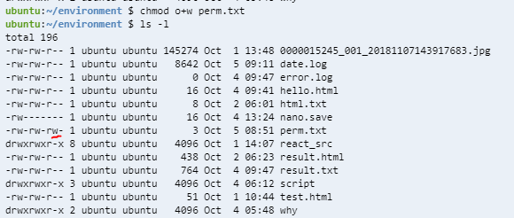위와 같이 부여할 수 있고 perm.txt의 other 부분에 w가 추가된 걸 확인할 수 있다. 이러면