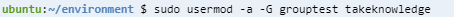 이 그룹의 멤버를 추가하는 건 'usermod -a -G 그룹명 유저이름' 명령어를 활용해 할 수 있다