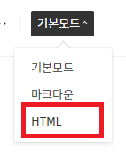 그 다음 모드를 HTML 모드로 바꾸고