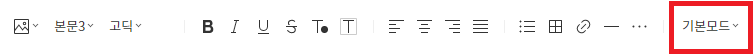 에디터 상단의 '기본 모드' 부분을 클릭.