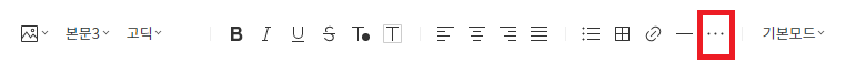 티스토리 글쓰기 에디터 상단 목록의 빨간 부분을 클릭하면