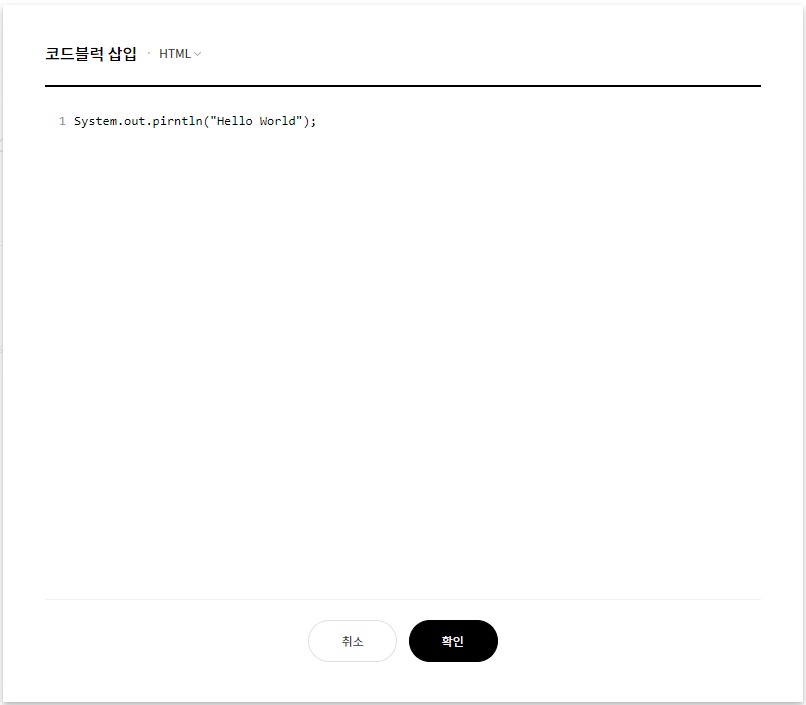 이렇게 코드블럭 메뉴가 나온다. 클릭하면