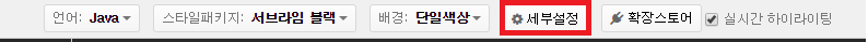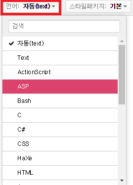 이 두 드롭다운 메뉴를 활용해서 원하는 언어와 스타일 패키지를 선택하고 블로그에 옮길 코드를 적은 뒤