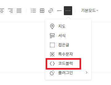 이렇게 코드블럭 메뉴가 나온다. 클릭하면